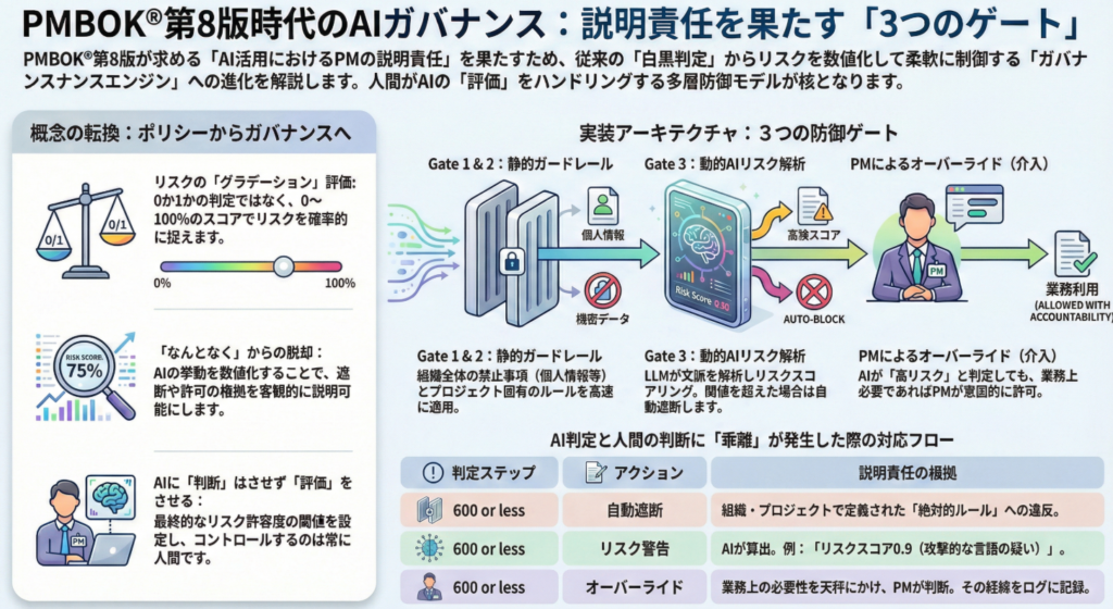 PMBOK(R)第8版のAIポリシーの説明責任を実装する ガバナンスエンジンによるリスク可視化