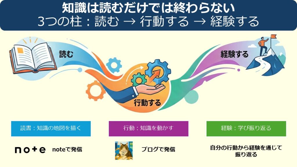 知識は読むだけでは終わらない 3つの柱:読む → 動く → 経験から振返る